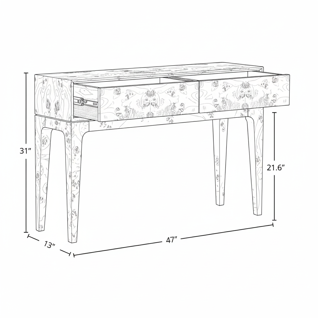 Long and slim in form, this console table offers generous surface space for décor, lighting, or everyday essentials. The unique burl pattern ensures each piece feels distinctive, making it a timeless addition that blends effortlessly with modern, transitional, or classic interiors.